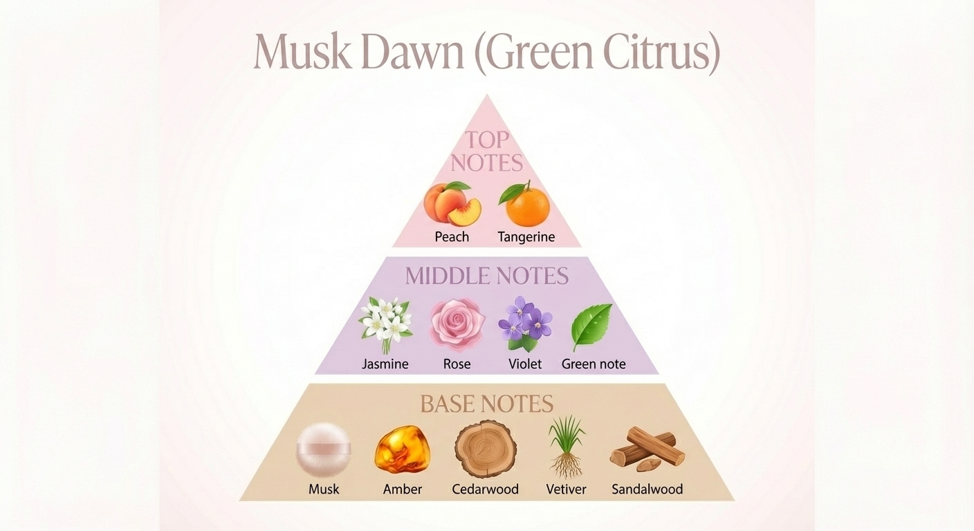 Привлекательный зелёно-цитрусовый аромат, где лёгкие ноты розы мягко раскрываются, встречаясь с тёплым, глубоким звучанием древесных аккордов.