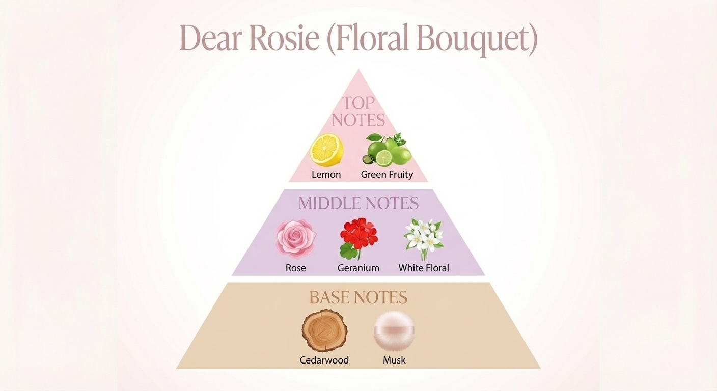 Соблазнительный цветочный букет, где чистая розовая роза и мускус мягко окутывают, словно объятия тысяч распустившихся цветов.